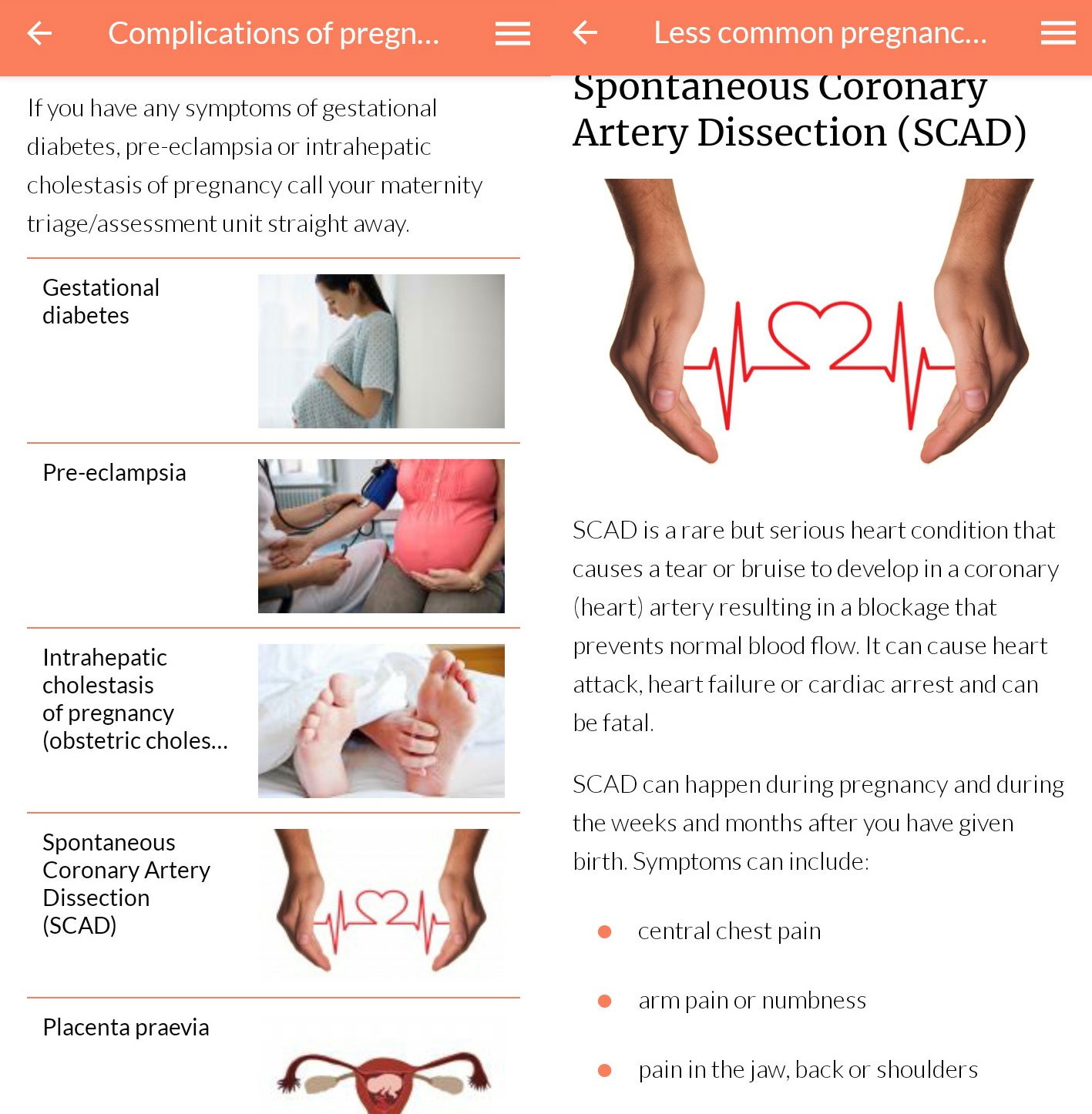 The Mum & Baby app, created by NHS Central London, now includes information about SCAD and heart health.