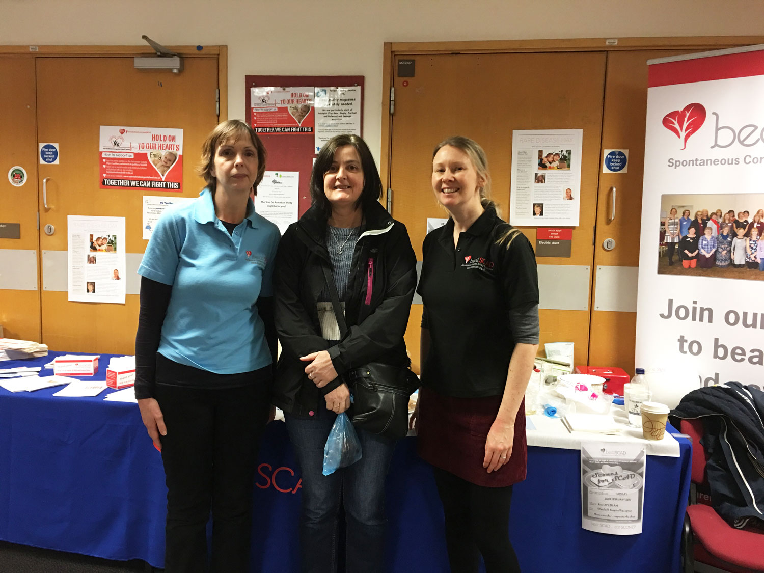 Samantha Roberts (pictured below left with Rebecca Breslin and Alex Mortimer) was one of two SCAD Survivors to undergo her research day as part of the Rare Disease Day event. Sam was attending Glenfield on the eve of her fifth ‘SCADiversary’. She said: “It was a productive day… lovely to see Dr Abi and Dr Adlam… and great to meet up with other fellow SCADsters… I’m glad and lucky to be part of the picture to further understanding.”