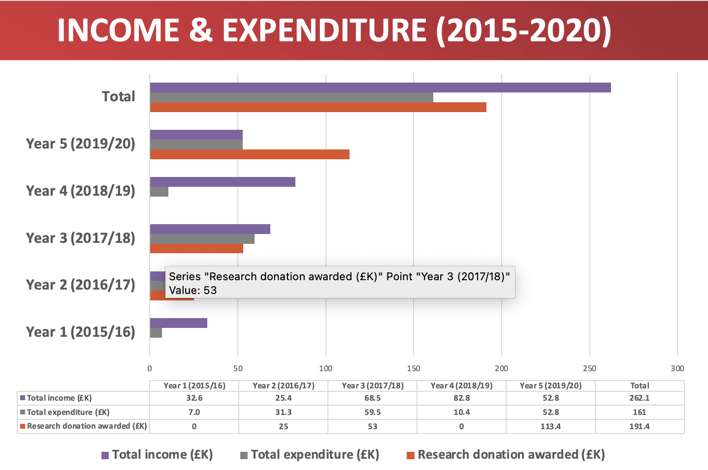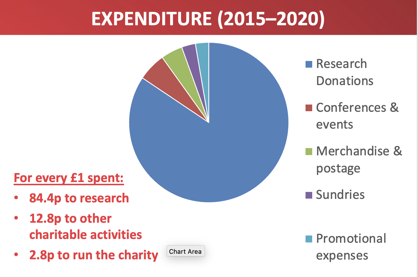 - 12.8p has been used for other charitable activities such as event costs (venue hire, filming etc.), merchandise and promotional expenses