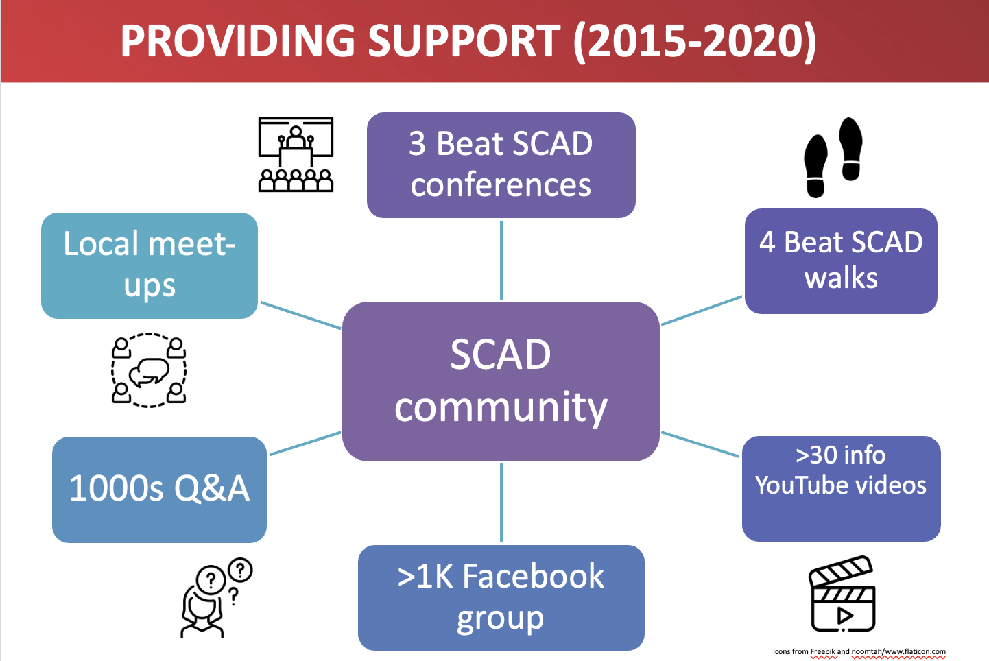 Beat SCAD film the talks delivered by researchers and guest speakers at our conferences and walks and post the videos to our YouTube channel to ensure information is available to the SCAD community and general public. Volunteers from the SCAD community have also been generous with their time and skills and provided additional videos to support people affected by SCAD. Over 50 videos have been posted during our first five years, with more than 30 being informational and educational talks from our events.